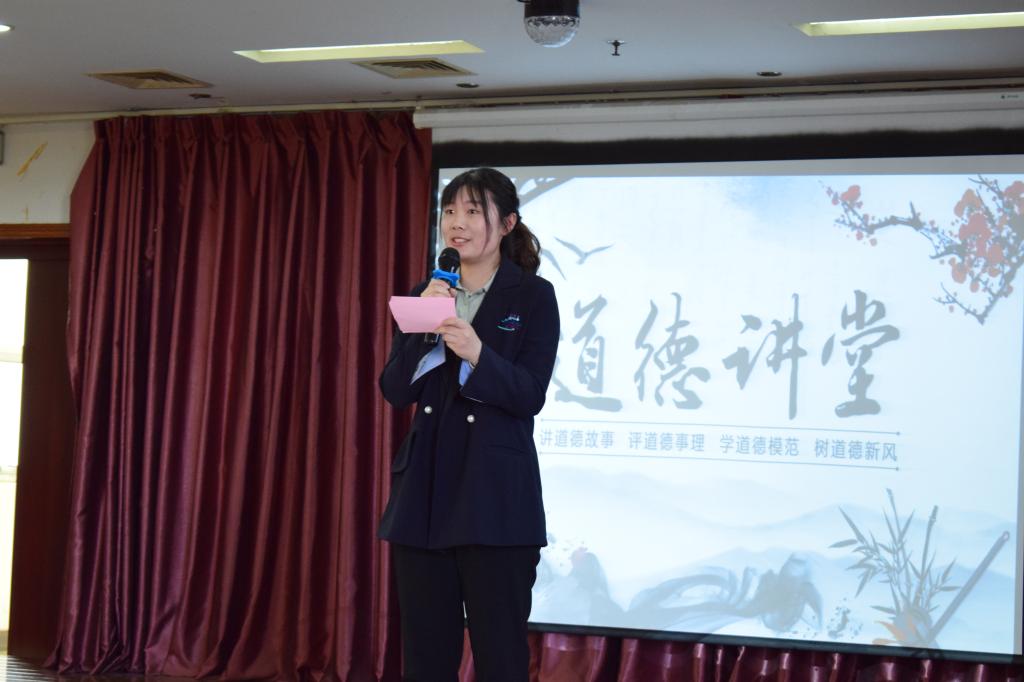 道德讲堂在庄严的国歌声中拉开序幕。