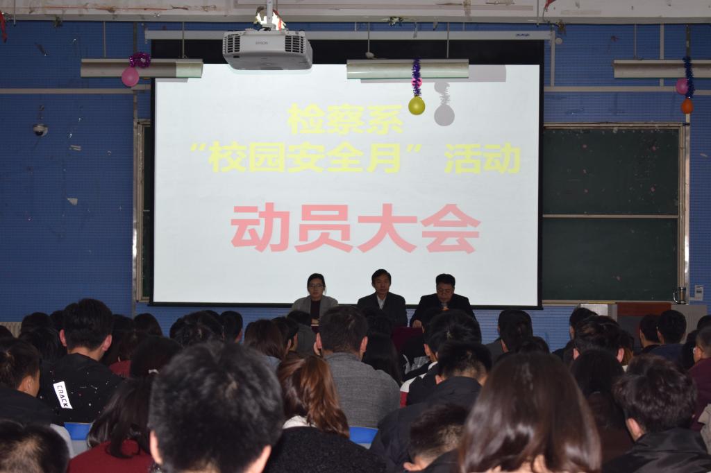 为切实做好校园安全稳定工作,努力构建平安校园、和谐校园,依照学院《开展“校园安全月”活动方案》的安排部署,3月4日,检察系先后召开全体教职工会议和学生骨干会议进行广泛动员,“校园安全月”活动正式启动。