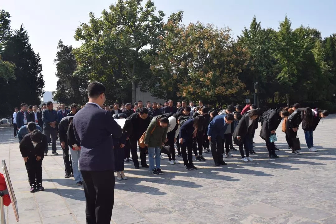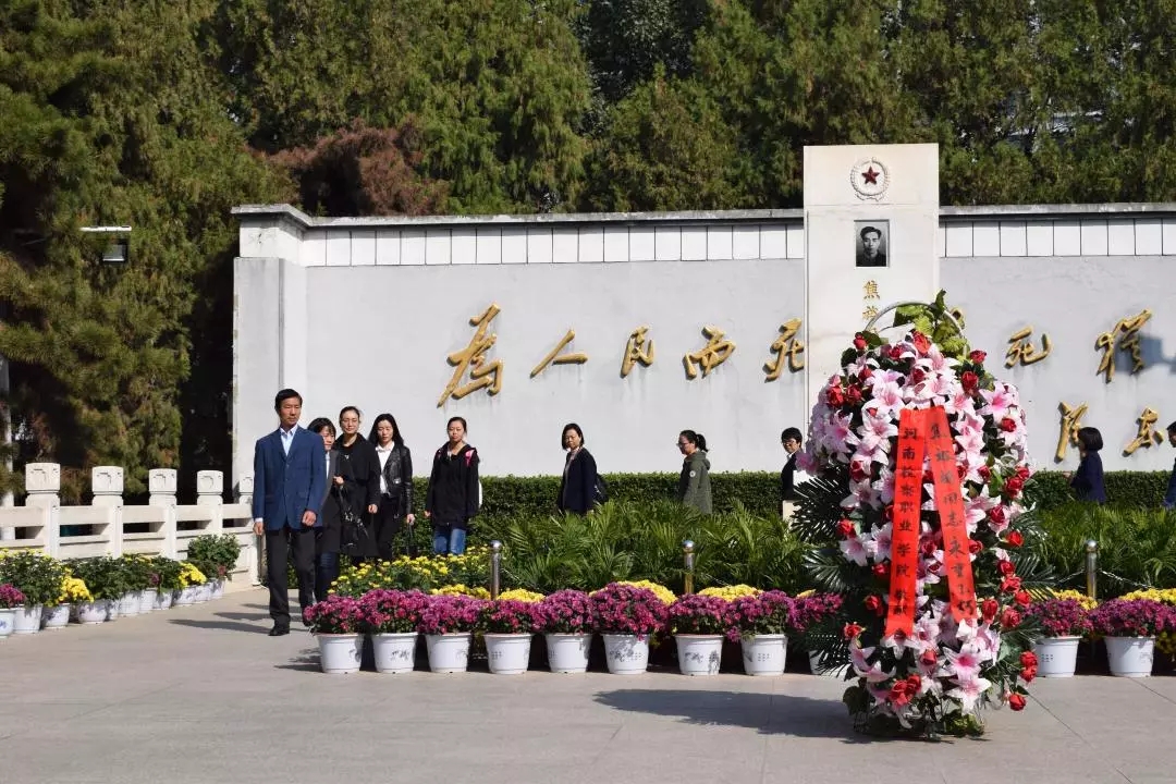 在焦裕禄陵园前,党总支书记郑志锋代表全体同志向焦裕禄烈士敬献花篮,同志们集体向焦裕禄烈士墓碑鞠躬致敬,并面向党旗举起右手,重温入党誓词。之后,全体师生党员有序地瞻仰了焦裕禄烈士墓,表达了对焦裕禄同志的无限哀思和敬仰之情。