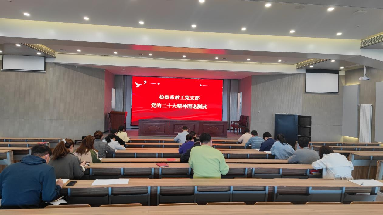 持续深入学习贯彻党的二十大精神,检验前期学习成效确保党的二十大精神入脑入心、见行见效3月15日下午,检察系教工党支部组织全体党员在学院2301培训教室举行党的二十大 精神理论知识测试。